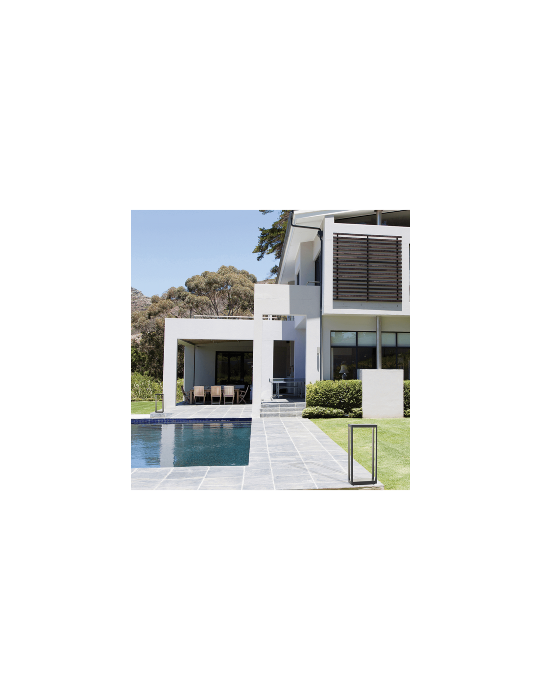 Udendørs bedlampe udført i et stilrent design fremstillet i mat graphitgrå lakeret aluminium og klart glas. Lampen måler 50 cm i højden og anvender 8W LED lyskilde (Inkl.).