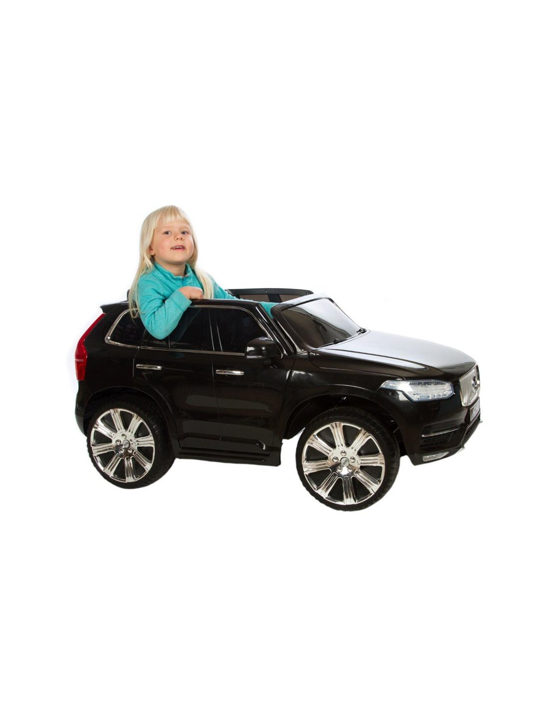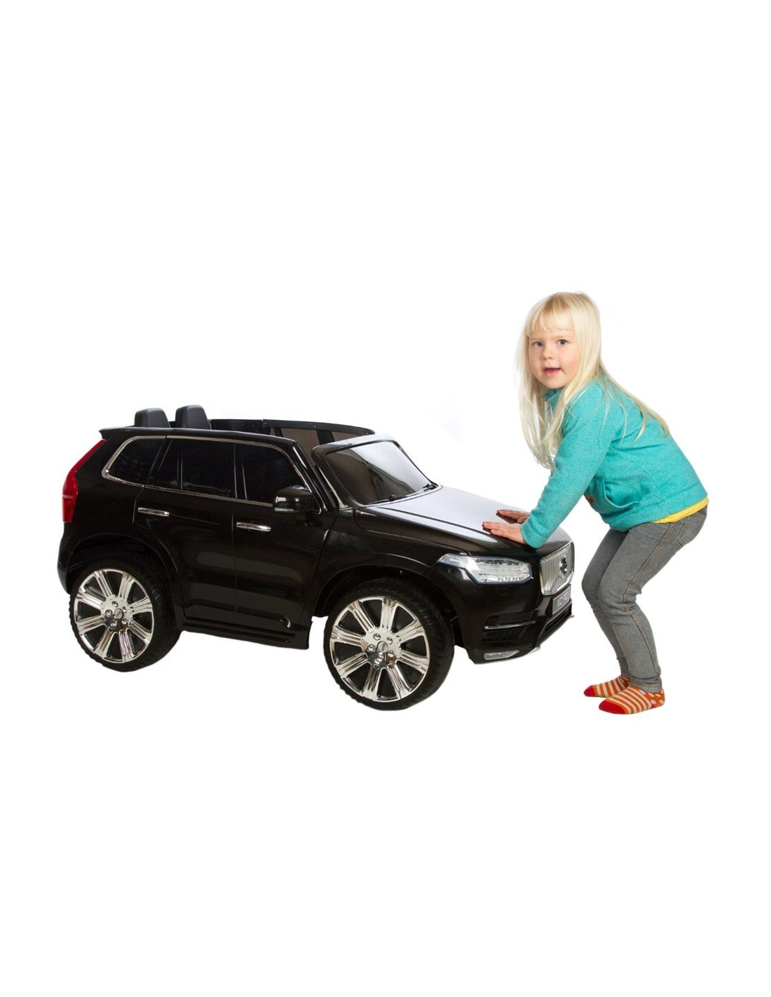 Elektrisk 2x12V Volvo XC90 bil til 2 børn, udført i et design af sort metal og kunststof. Elbilen passer til børn i alderen 3 - 7 år og måler 70 cm i højden og 128 x 71 cm i længde og bredde. Til bilen medfølger en fjernbetjening til voksne, der kan styre bilen indenfor en radius af 25 meter.