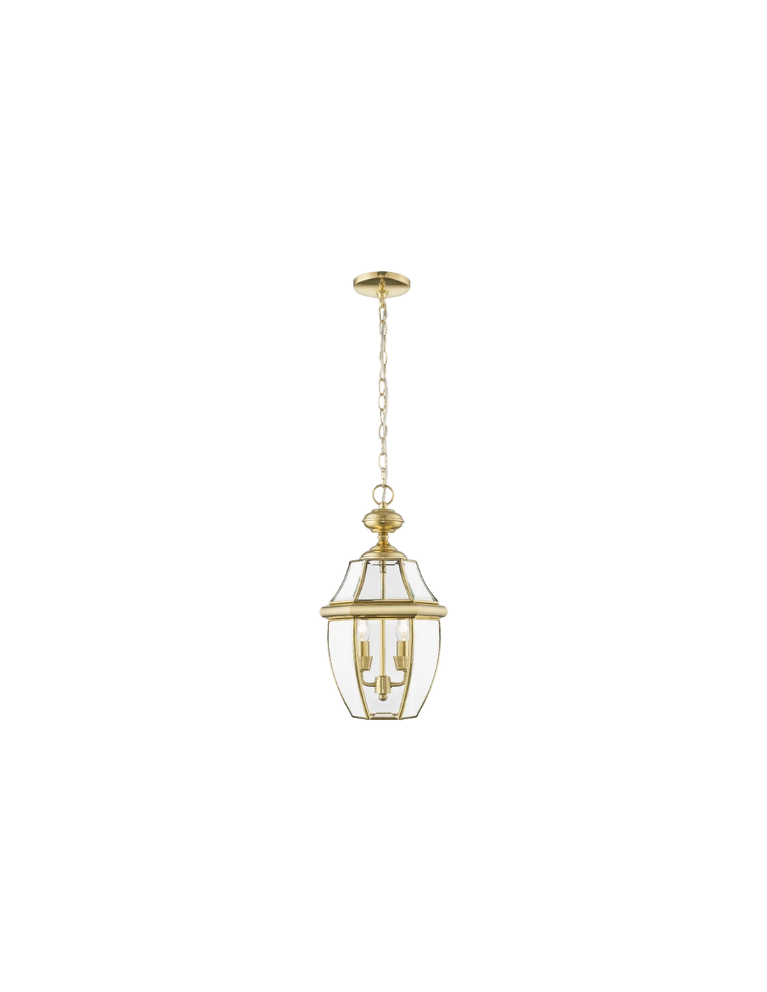 WHITLEY Udendørs loftlanterne udført i et klassisk design af poleret guldfarvet messing, aluminium og klart glas. Lampen leveres til europæisk standard til 2 x E14 lyskilder og måler 47,5 - 292,5 cm i højde/fremspring og 26,5 cm i diameter.