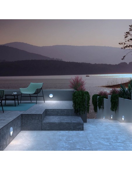 LANDER udendørs væglampe i et design fremstillet i aluminium og polycarbonat. Lampen måler 11 cm i diameter og anvender 1 x 3W SMD LED lyskilde (Inkl.).