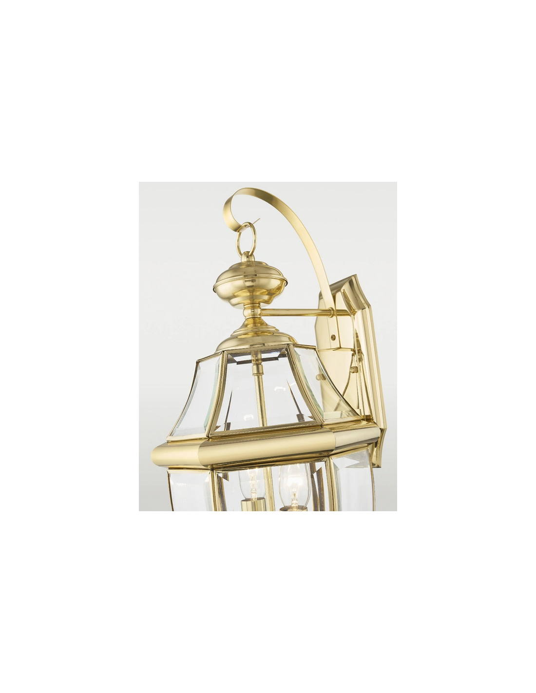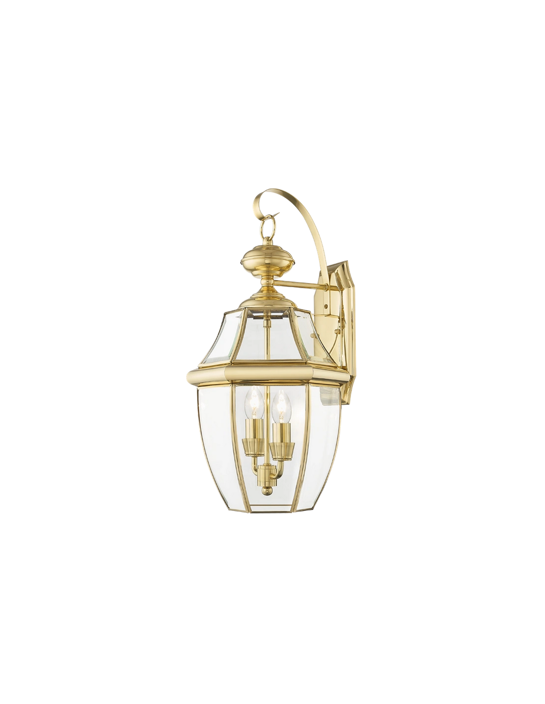 WHITLEY Udendørs væglampe udført i et design af poleret guldfarvet rustfri stål, aluminium og klart glas. Lampen leveres til europæisk standard til 2 x E14 lyskilder og måler 52 cm i højden og 25 x 26,5 cm i bredde og dybde/fremspring.