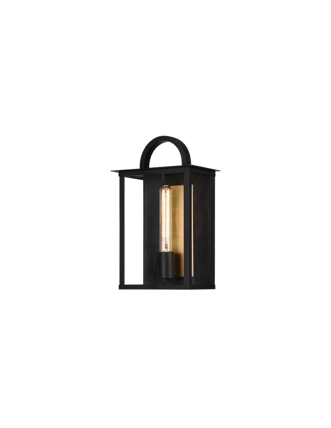 MALIBU Udendørs væglampe udført i et design af sortlakeret aluminium med detalje i messinglakeret aluminium, og skærm i klart glas. Lampen leveres til europæisk standard til 1 x E27 lyskilde og måler 36 cm i højden og 23 x 14 cm i bredde og dybde/fremspring.