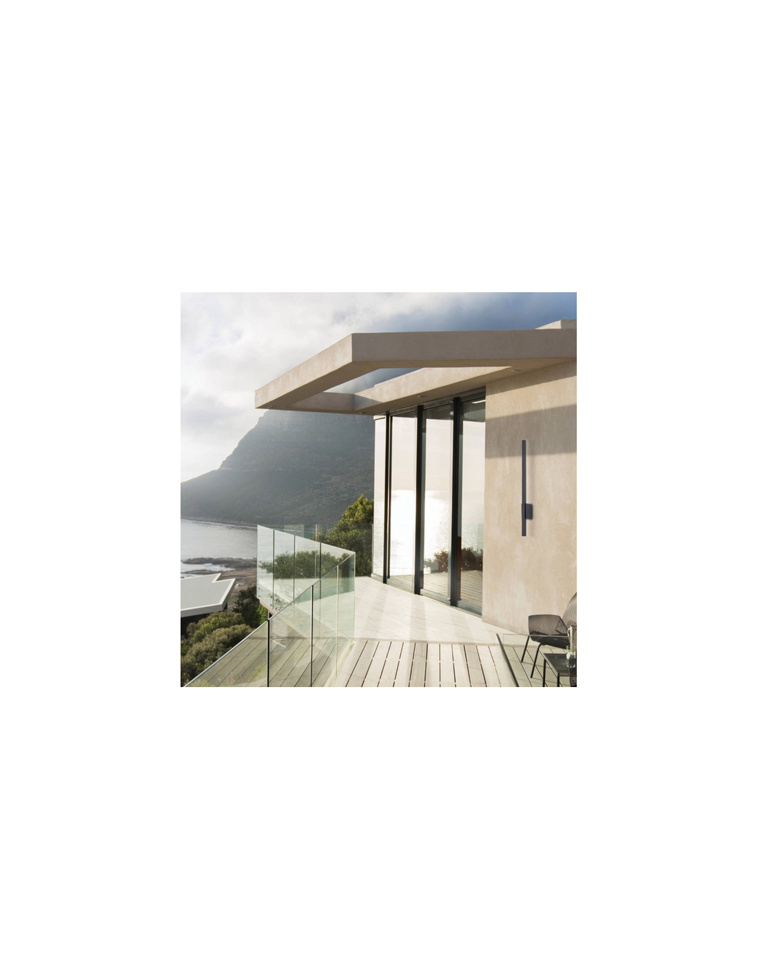 Udendørs væglampe udført i et moderne design fremstillet i graphitgrå lakeret aluminium og med skærm i klart polycarbonat. Væglampen måler 80 cm i højden og anvender 12W LED lyskilde (Inkl.).