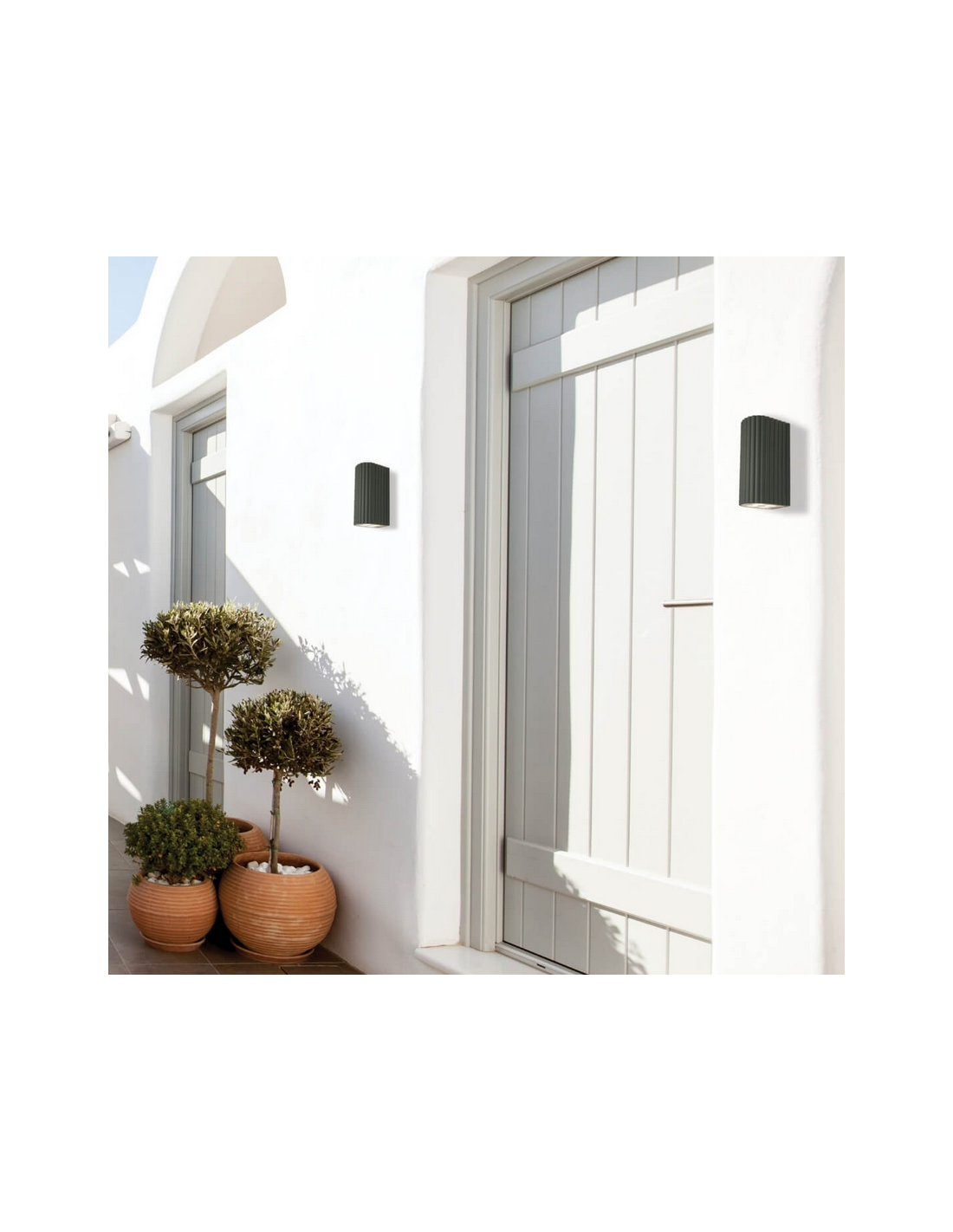 Udendørs up/down væglampe udført i et moderne design fremstillet i graphitgrå lakeret aluminium og klart glas. Væglampen måler 16 cm i højden og anvender 8 x 1W LED lyskilder (Inkl.).