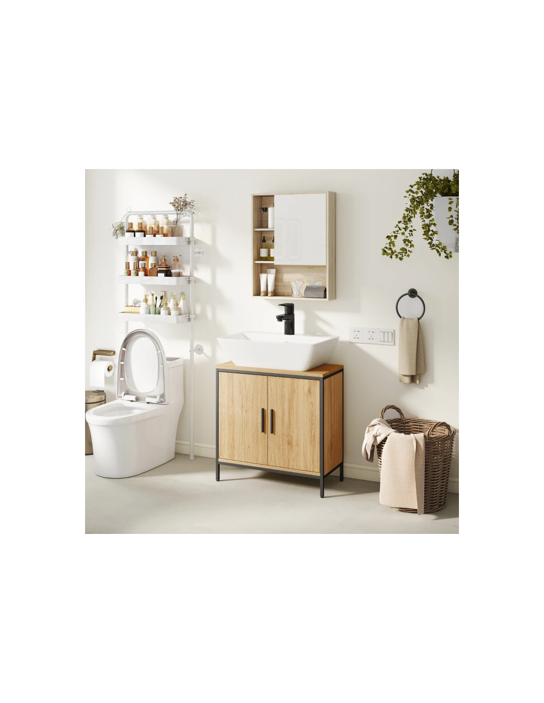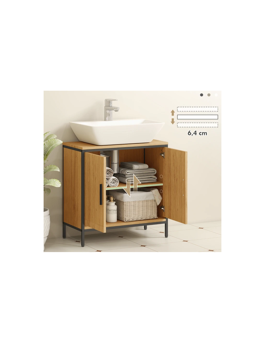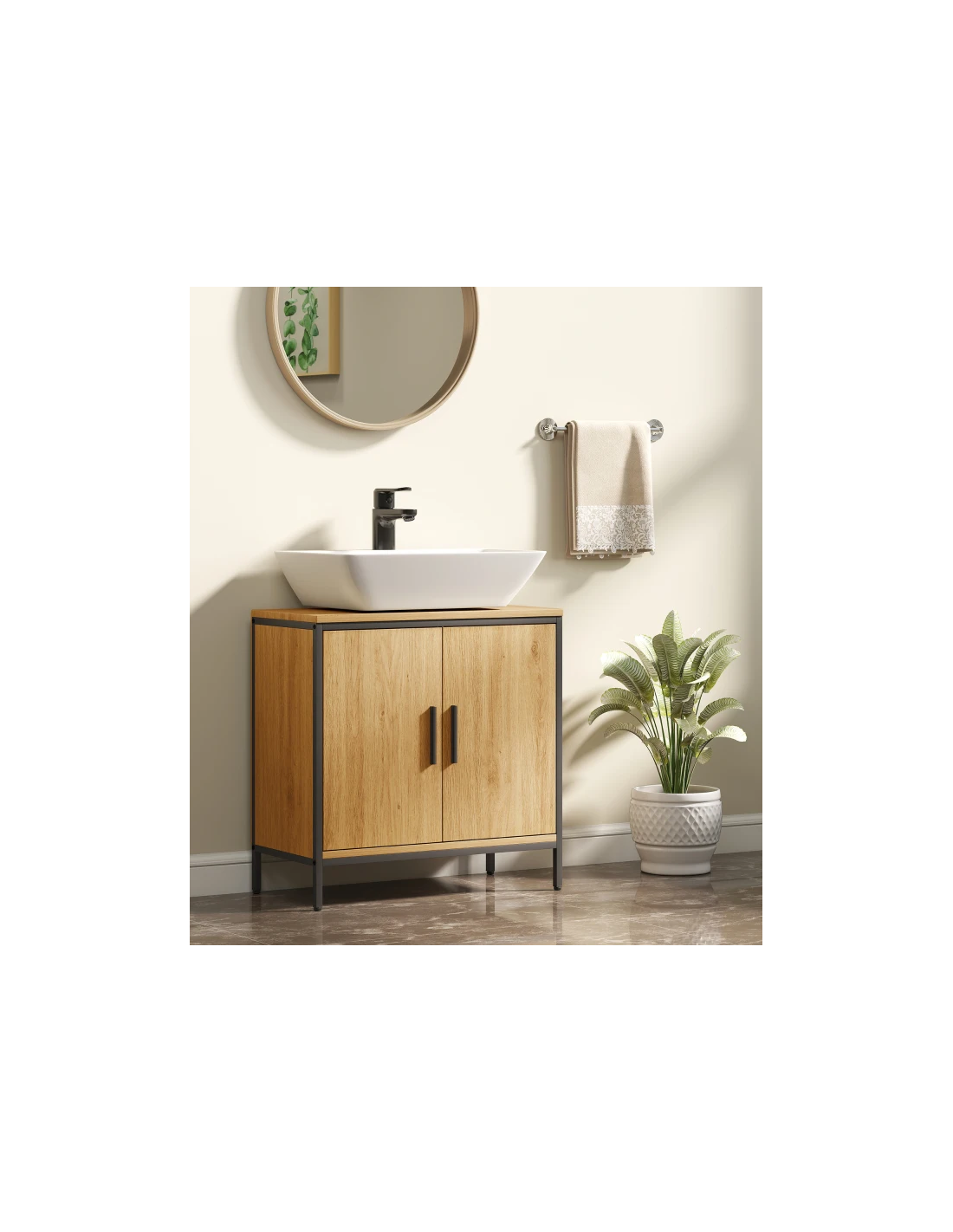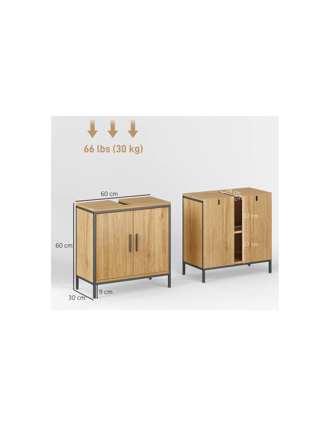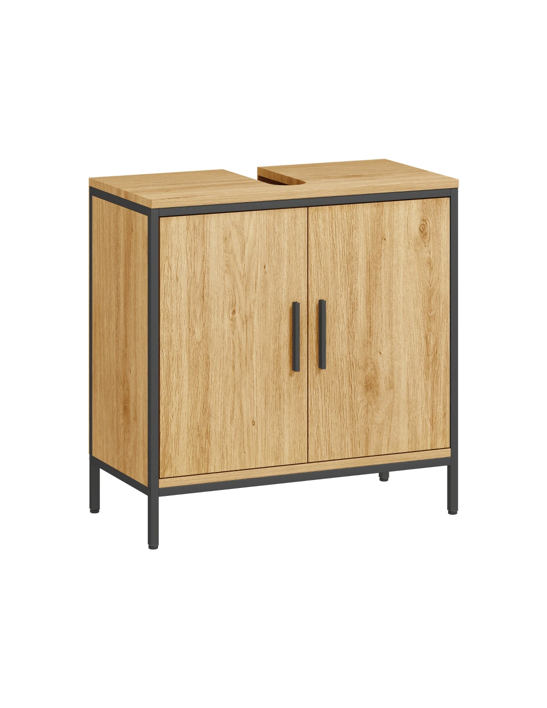 Underskab til håndvask i stål og møbelplade H60 x B60 x D30 cm - Sort/Eg