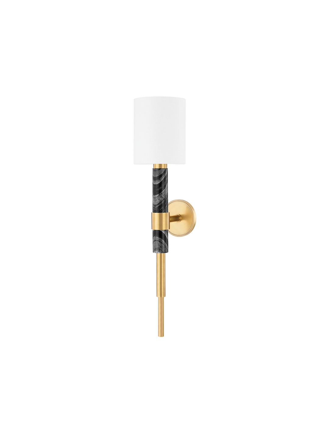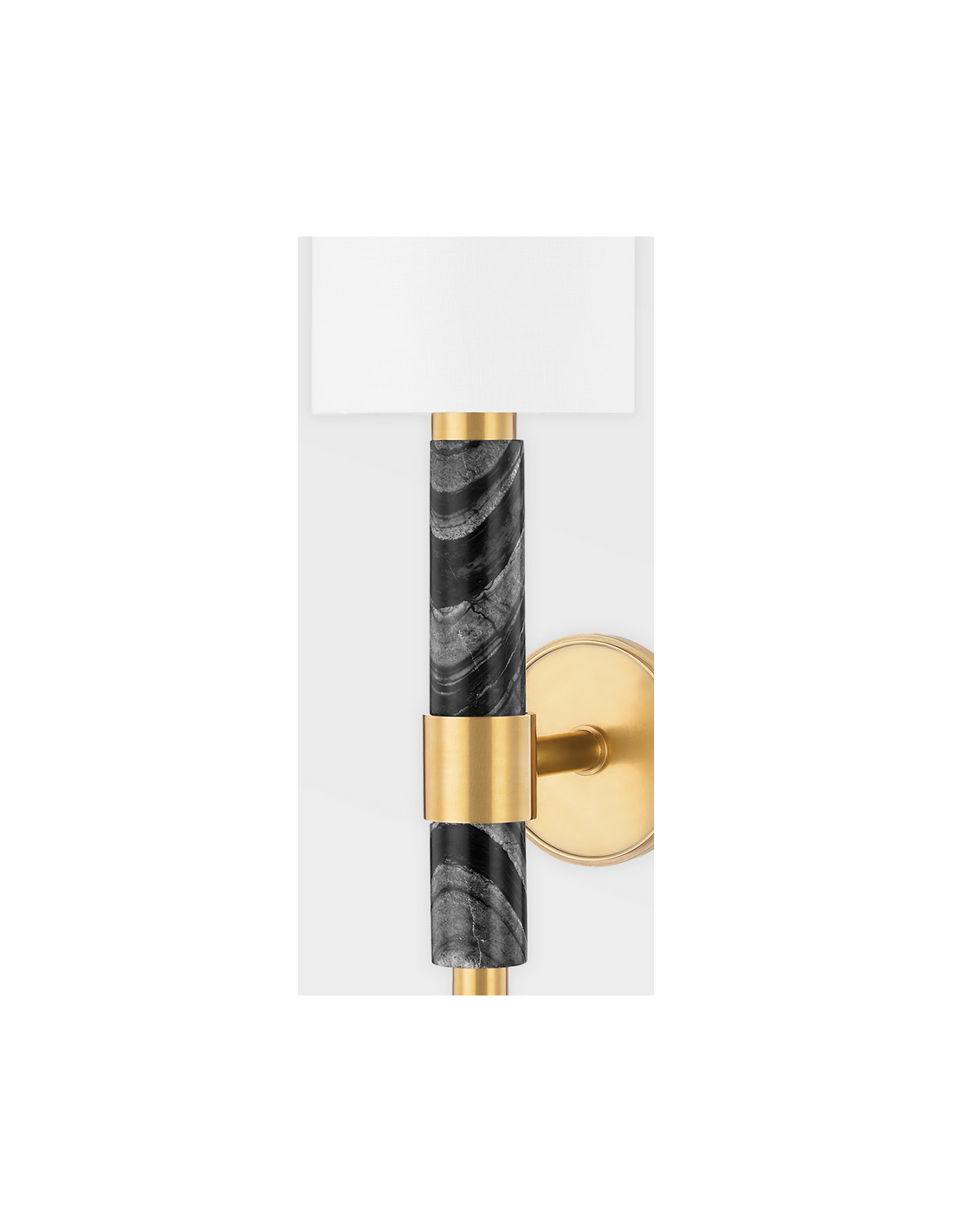 SOLSTICE Væglampe i stål, marmor og linned H76,9 cm 1 x E27 - Vintage messing/Gråsort marmor/Hvid