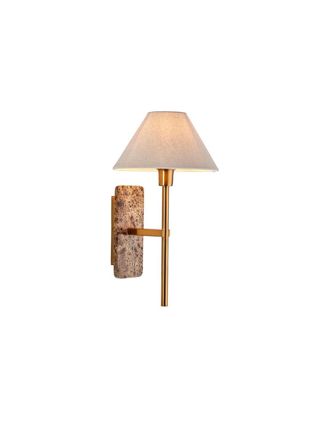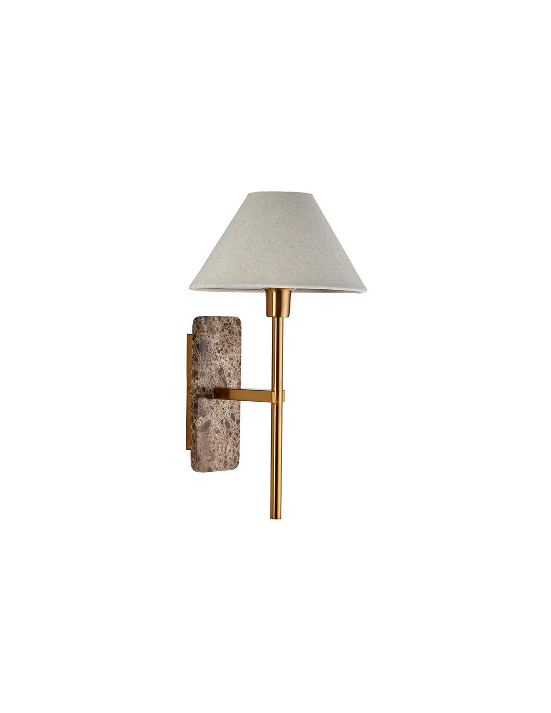 FARO Væglampe udført i et luksuriøst design af antik messinglakeret stål, brun marmor og med skærm i naturfarvet linned. Lampen måler 40,5 cm i højden og anvender 1 x E14 lyskilde (ekskl.).