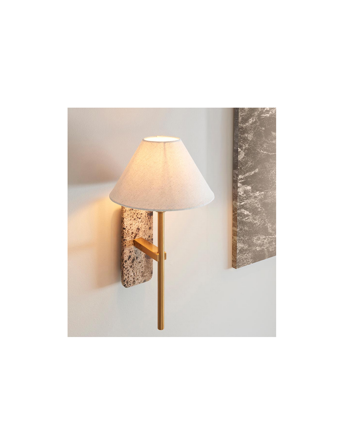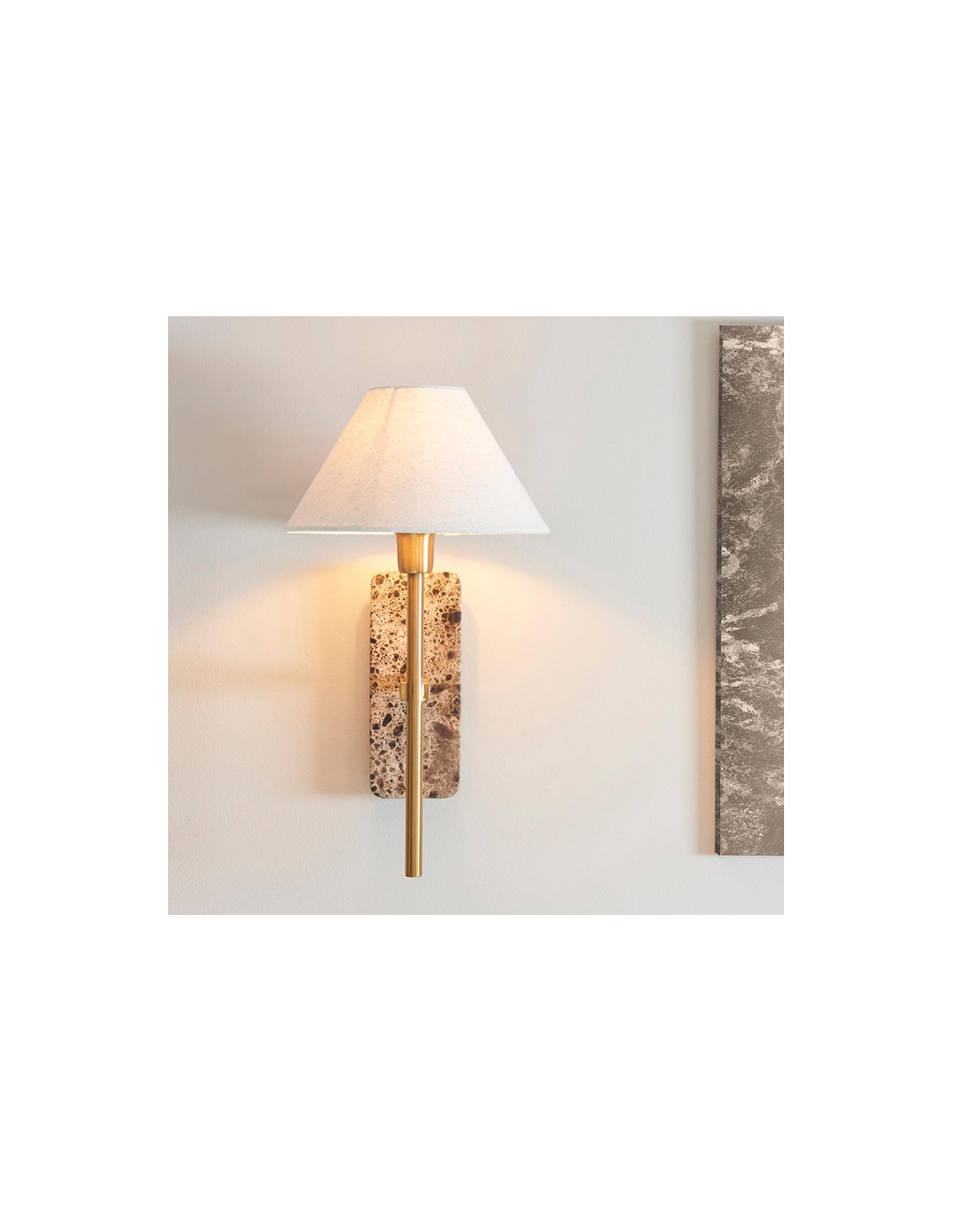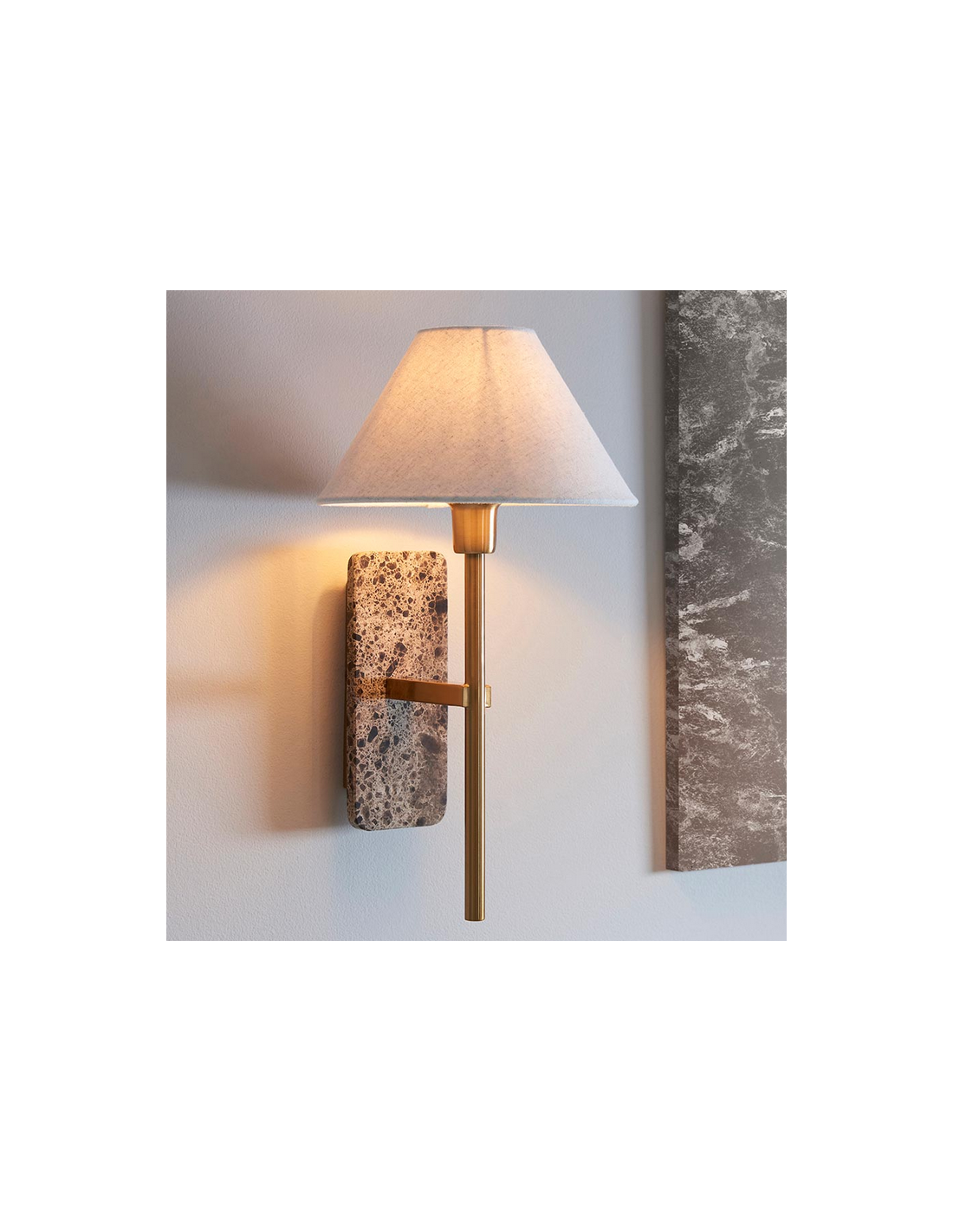 FARO Væglampe i marmor, stål og linned H40,5 cm 1 x E14 - Antik messing/Brun marmor/Natur