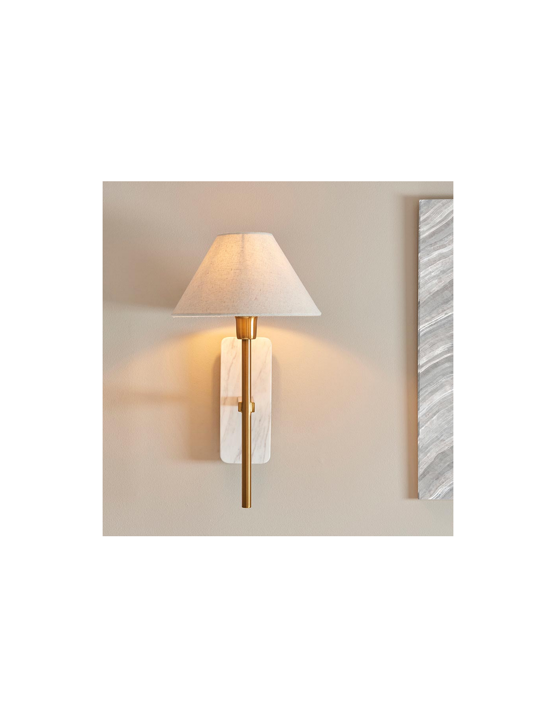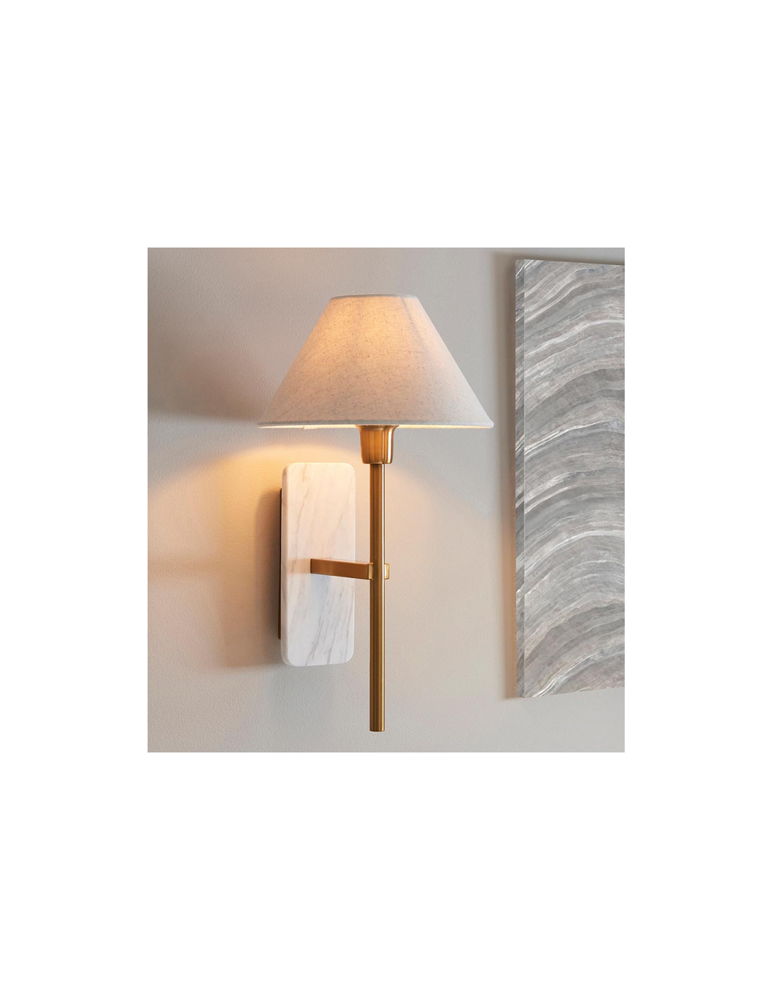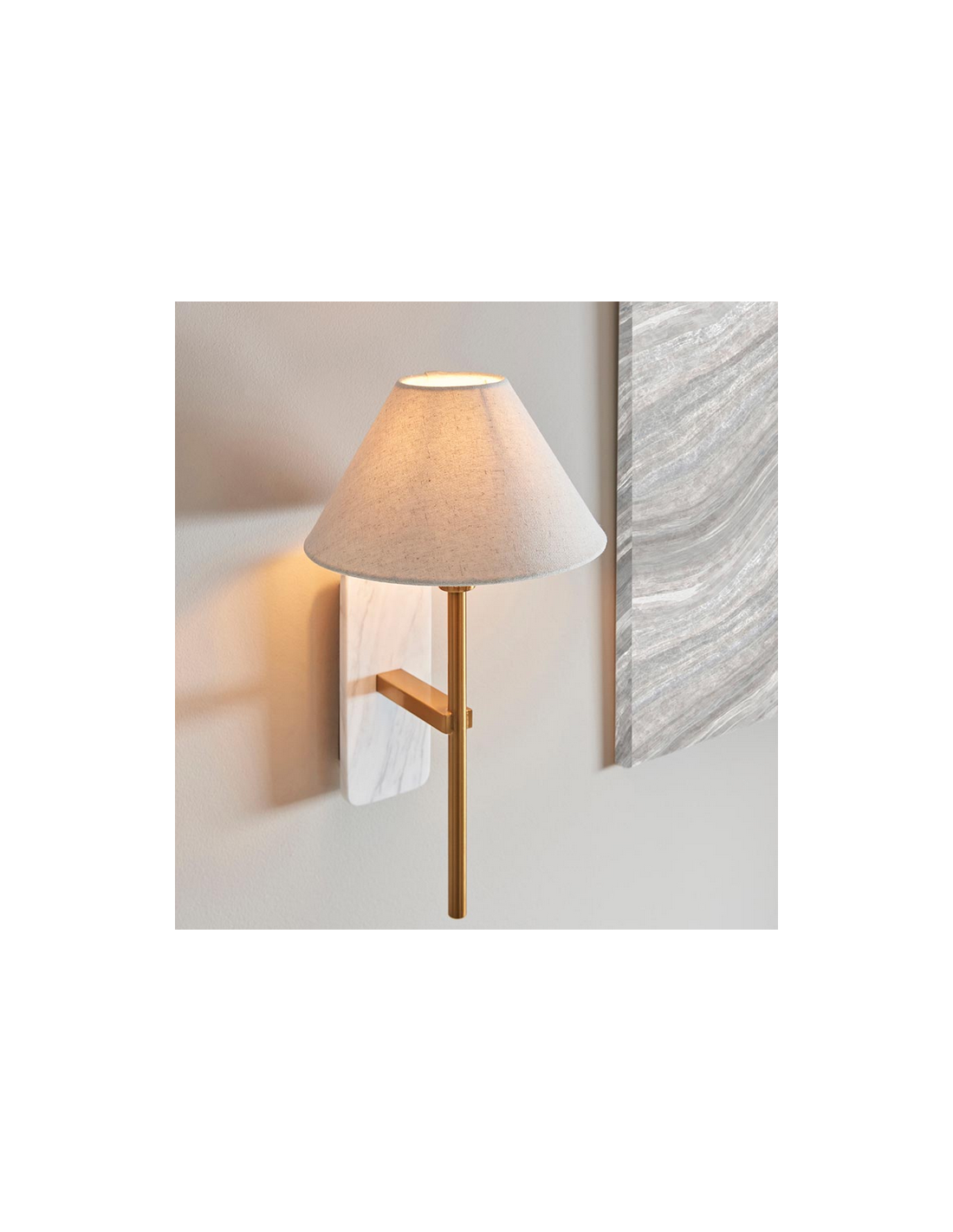 FARO Væglampe i marmor, stål og linned H40,5 cm 1 x E14 - Antik messing/Hvid marmor/Natur
