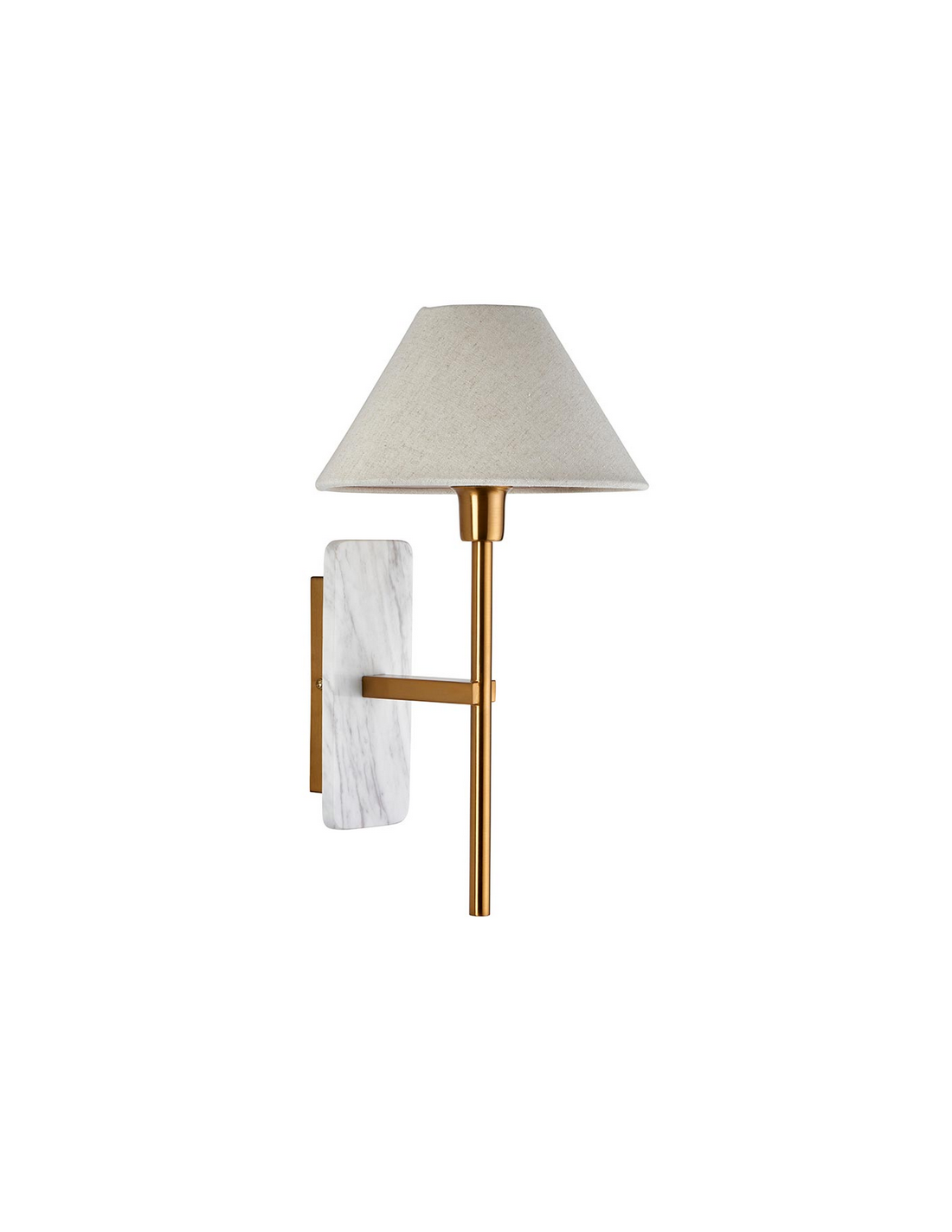 FARO Væglampe udført i et luksuriøst design af antik messinglakeret stål, hvid marmor og med skærm i naturfarvet linned. Lampen måler 40,5 cm i højden og anvender 1 x E14 lyskilde (ekskl.).