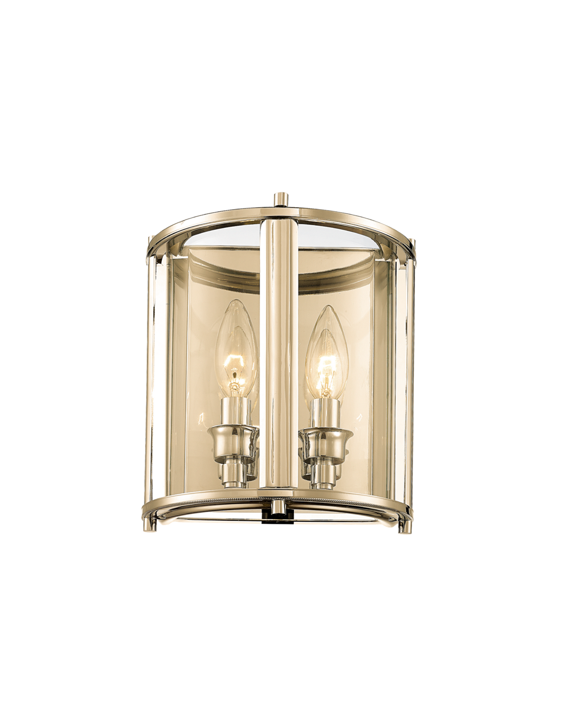 NEW YORK Væglampe fremstillet i et design af poleret guldfarvet metal og klart glas. Lampen måler 23 cm i højden og leveres til europæisk standard til 2 x E14 lyskilder.