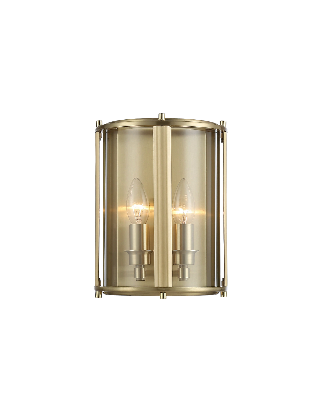 NEW YORK Væglampe i metal og glas H23 cm 2 x E14 - Børstet messing/Klar