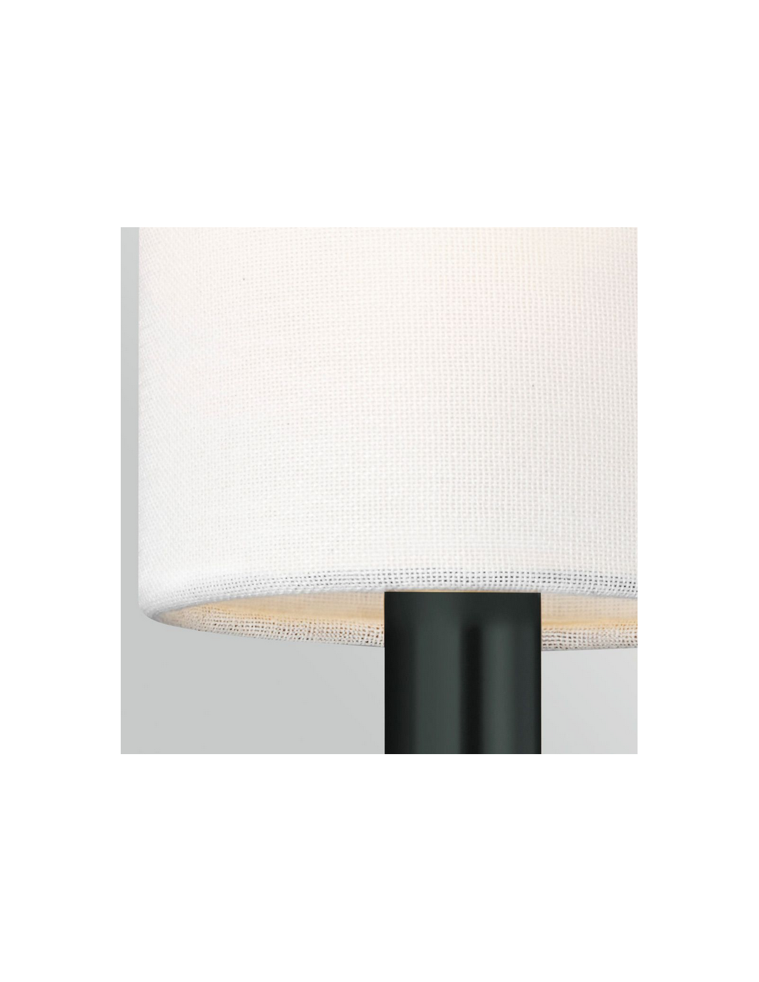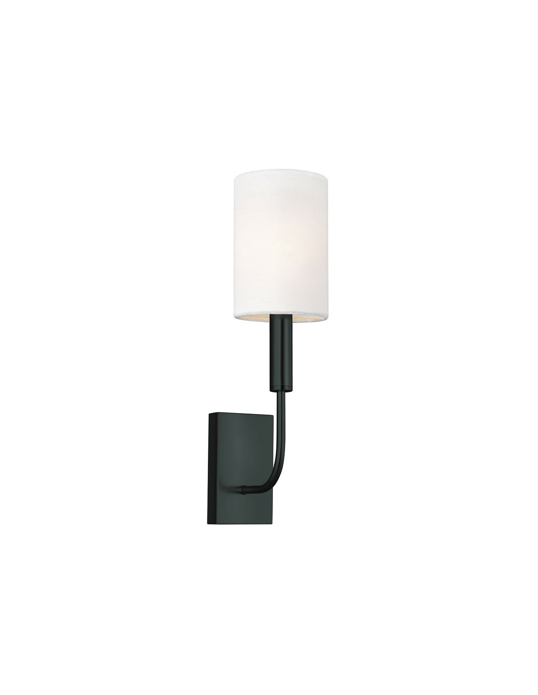 BRIANNA Væglampe udført i et design fremstillet af sortlakeret stål og hvid linned. Lampen leveres til europæisk standard til 1 x E14 lyskilde og måler 35,9 cm i højden.
